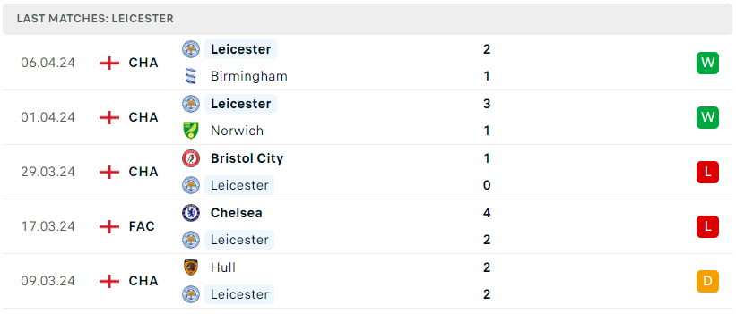 Phía đối diện, Leicester cũng đang cho thấy sự trở lại đầy mạnh mẽ sau gần nửa tháng trượt dài. Chiến thắng nhẹ nhàng trước Birmingham ở vòng đấu trước đã là trận thắng thứ 2 liên tiếp của bầy Cáo. Với trận thua của Ipswich trước Norwich ít giờ trước thì đoàn quân Maresca hiện đã chính thức quay trở lại vị trí dẫn đầu quen thuộc. Đáng nói, trong tay Leicester City vẫn còn 1 trận chưa đá, đó sẽ là bước ngoặt quan trọng để họ sớm tạo ra sự bứt phá và thuận lợi giành vé trở lại Premier League ở mùa sau.