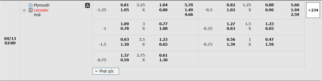 Soi kèo Châu Á, kèo chấp Plymouth vs Leicester City