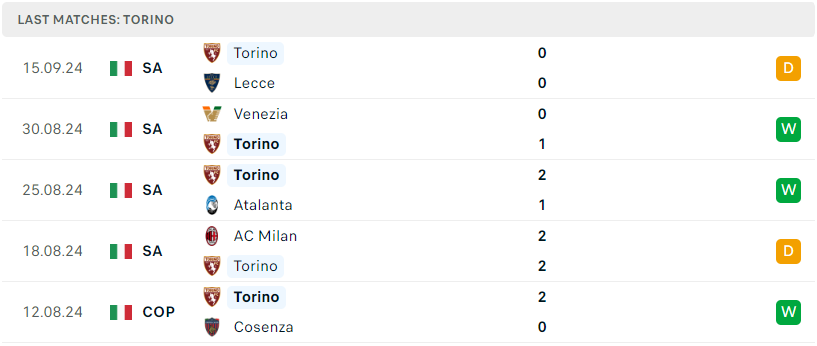 Phong độ đội bóng Torino vs Empoli