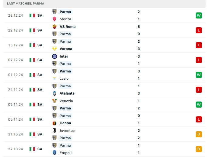 -Phong độ Parma