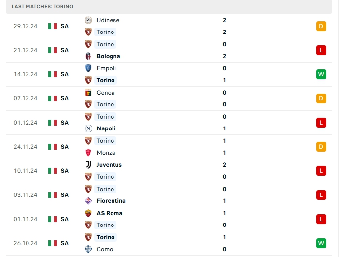 - HT Torino 0-0 Parma