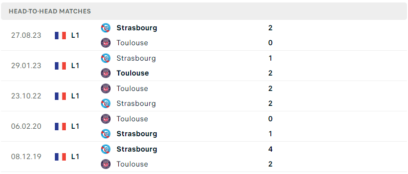 Thành tích đối đầu của Toulouse vs Strasbourg