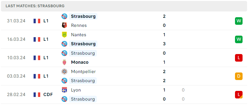 Phong độ của Strasbourg