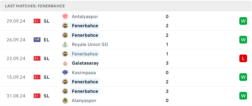 Phong độ của Fenerbahce