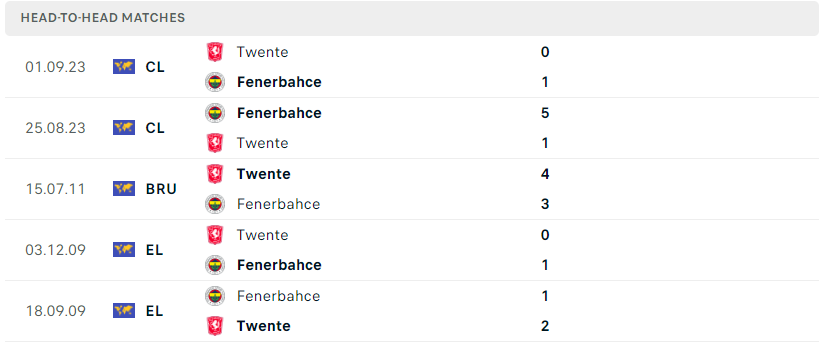 Thành tích đối đầu của Twente vs Fenerbahce