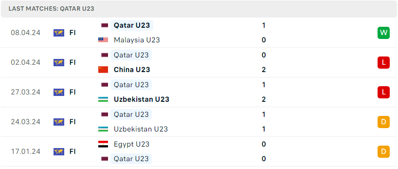 Phong độ của U23 Qatar