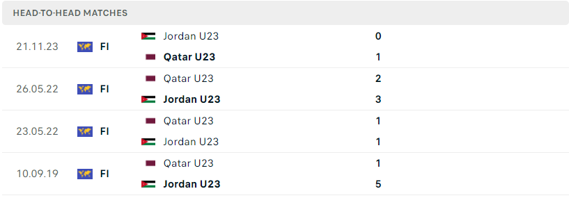 Thành tích đối đầu của U23 Jordan vs U23 Qatar
