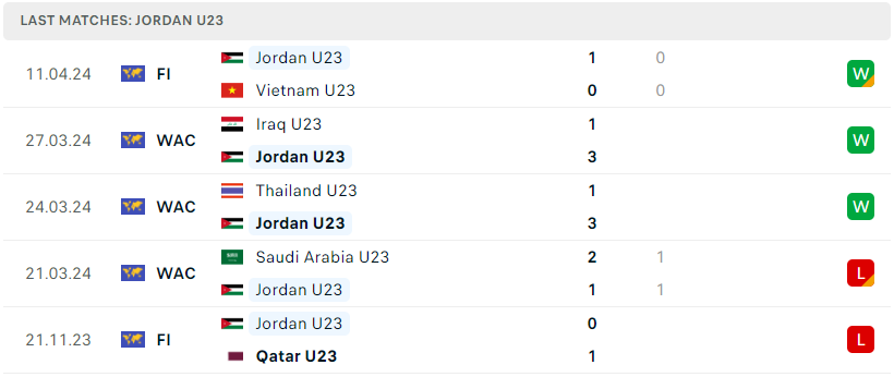 Phong độ đội bóng U23 Jordan vs U23 Qatar