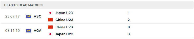 Thành tích đối đầu của U23 Nhật Bản vs U23 Trung Quốc
