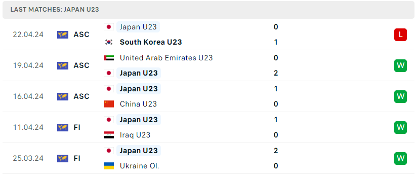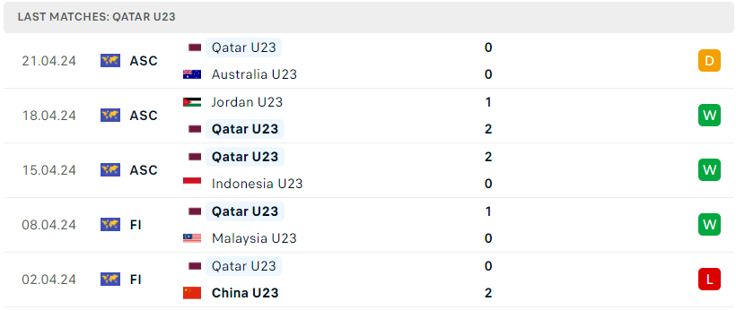 Phong độ đội bóng U23 Qatar vs U23 Nhật Bản