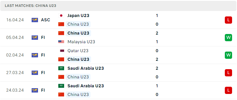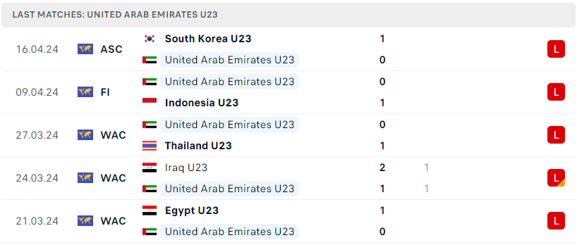 Phong độ đội bóng U23 United Arab Emirates vs U23 Trung Quốc