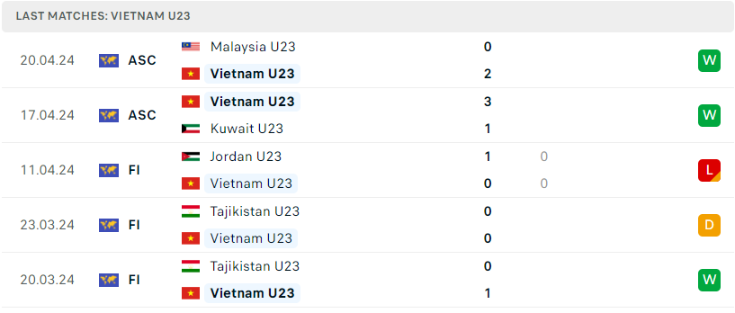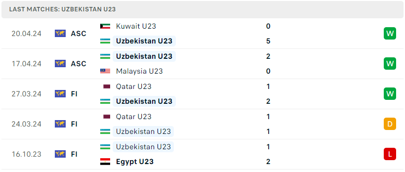 Phong độ đội bóng U23 Uzbekistan vs U23 Việt Nam