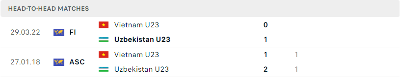 Thành tích đối đầu của U23 Uzbekistan vs U23 Việt Nam