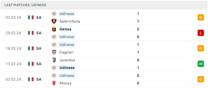 Tưởng chừng như với việc đánh bại một đối thủ lớn như Juventus sẽ giúp Udinese sớm lấy lại hình ảnh. Thế nhưng, mọi chuyện lại không được suôn sẻ như vậy khi những vấn đề mà tập thể này đang phải đối mặt là quá nhiều. Trận hòa bạc nhược trước đội đội sổ BXH Salernitana vừa qua đã là trận không thắng thứ 3 liên tiếp của Udinese. Hiện họ đã bị nhóm cầm đèn đỏ khỏa lấp cách biệt về điểm số và nếu cứ thi đấu trong sự bất ổn thì chắc chắn ngày trở lại Serie B sẽ không còn xa.