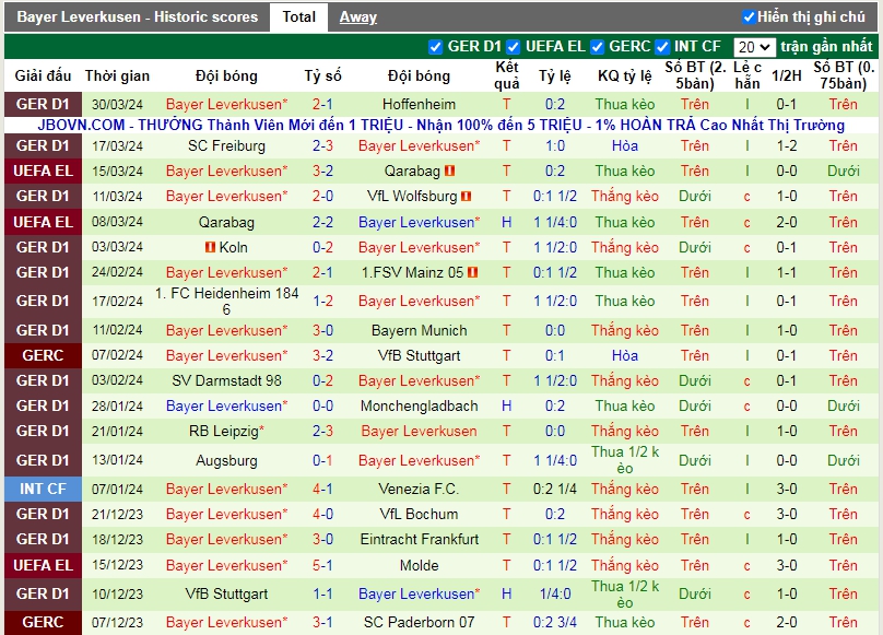Kèo châu Âu cũng đang là sự ưu thế cho các vị khách khi mức ăn của Bayer Leverkusen đang là 1.50 trong khi đó con số này của Union Berlin đã là 5.90. Dù thi đấu xa nhà nhưng đoàn quân của HLV Xabi Alonso được đánh giá cao hơn là điều dễ hiểu khi họ đang thể hiện sự ấn tượng trong lối chơi, và duy trì được sự ổn định trong thời gian dài, không những thế họ còn đang chơi tốt ở những lần làm khách trước đối thủ trong quá khứ, một chiến thắng là điều được dự báo từ trước.