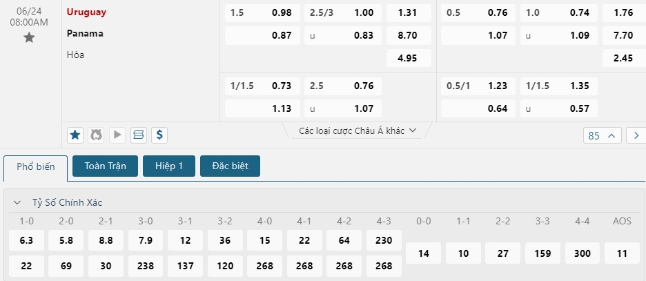 Soi kèo 1X2 7M Uruguay vs Panama