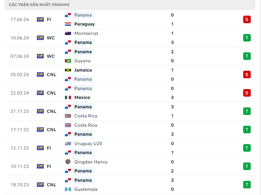 -Phong độ Panama