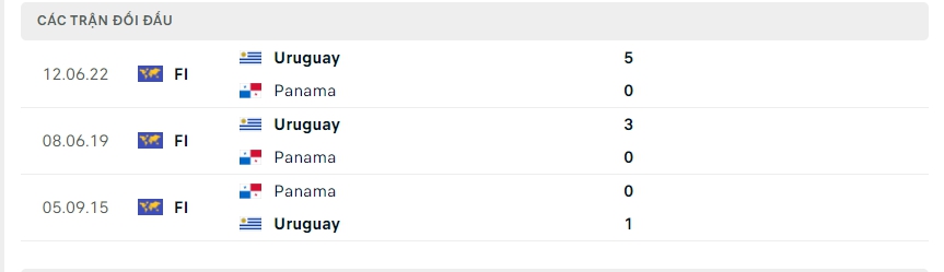 Lịch sử thi đấu của Uruguay vs Panama