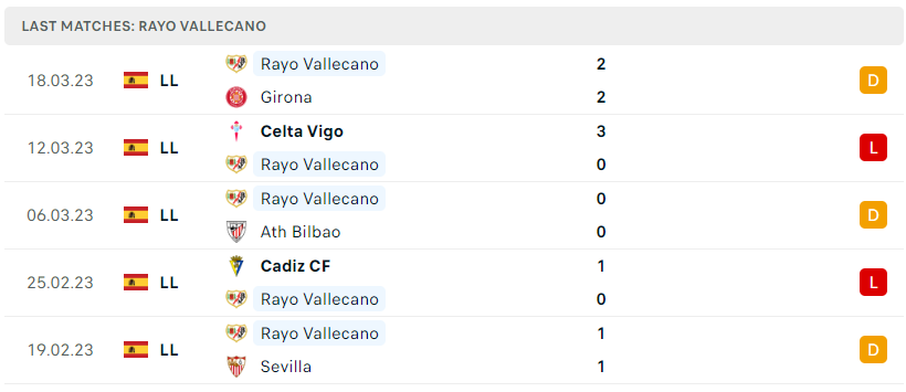 Phong độ của Rayo Vallecano