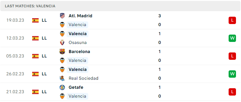 Phong độ đội bóng Valencia vs Rayo Vallecano