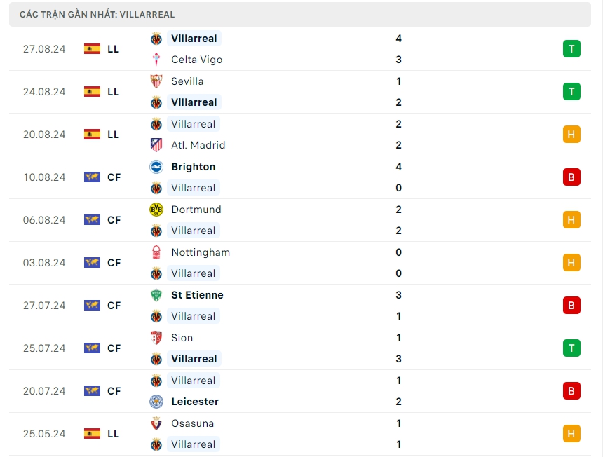 Trong khi đó với Villarreal họ vừa có chiến thắng ấn tượng 4-3 trước Celta Vigo, đây là trận thắng thứ 2 liên tiếp và cũng nối dài chuỗi bất bại lên con số 3 sau 3 lượt trận, có được 7 điểm và đang xếp vị trí thứ 2 trên BXH, hàng công của Villarreal thi đấu ấn tượng với 8 bàn thắng có được, tuy vậy việc hàng công dâng cao khiến lỗ hỏng nơi hàng thủ lộ rỏ với 6 bàn thua phải nhận, cả 3 trận đấu đó đều khép lại 90 phút từ 3 bàn thắng trở lên, khi thi đấu xa nhà cũng có đến 4/5 trận khép lại với số bàn thắng trên 3 bàn.