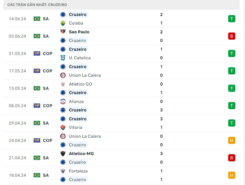 -Phong độ Cruzeiro