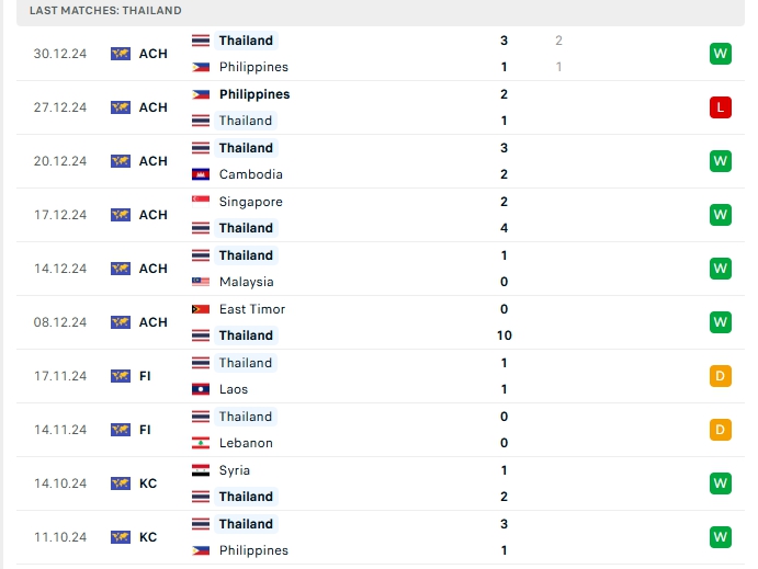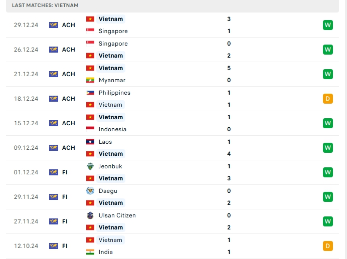 Phong độ đội bóng Việt Nam vs Thái Lan