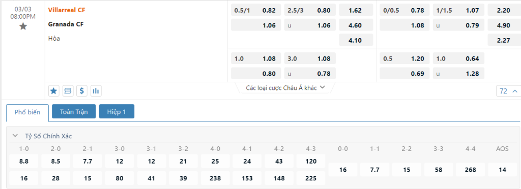 Với lợi thế mang tên sân nhà thì Villarreal vẫn đang là tập thể nhận được sự ưu ái trong kèo đấu này, qua mức giá trên sàn giao dịch là 0.75. Thắng lợi triệt để trước Real Sociedad ít ngày trước đã cho thấy rõ quyết tâm và sự hưng phấn trở lại của Tàu Ngầm Vàng. Trong thời điểm như vậy thì chắc chắn một đối thủ yếu kém và đang có nguy cơ lớn phải nói lời chia tay La Liga mùa sau như Granada sẽ không phải là mối đe dọa quá lớn dành cho binh đoàn áo vàng. Chưa kể, trên sân nhà đoàn quân Quique Setien hiện đang bất bại trong cả 4 trận đấu mới nhất và xa hơn thì họ cũng chỉ thua 1/8 trận đấu. Ngược lại, không những trình diễn một lối đá thiếu gắng kết và hiệu quả, Granada cũng tỏ ra hết sức vô hại trên sân khách với việc đã thua đến 11/13 lần hành quân gần nhất. Do đó, hoàn toàn có đủ cơ sở để đặt niềm tin vào đội chủ nhà trong kèo Châu Á.