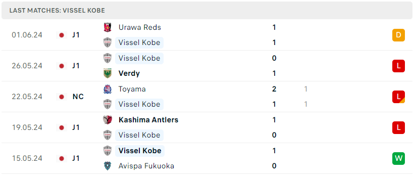Phong độ đội bóng Vissel Kobe vs Kawasaki Frotale