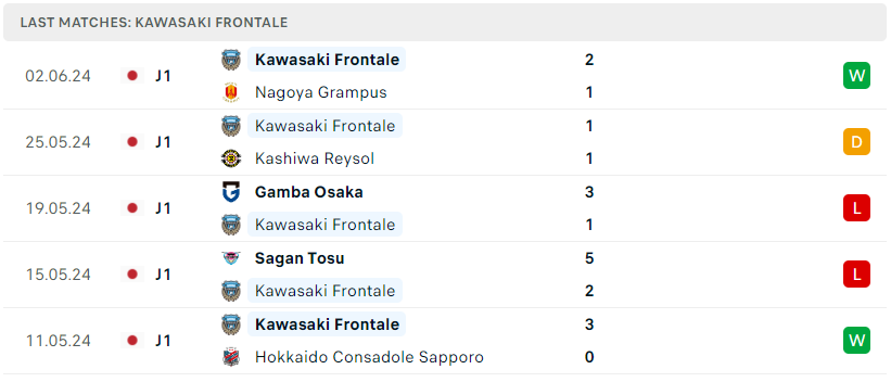 Phong độ của Kawasaki Frotale