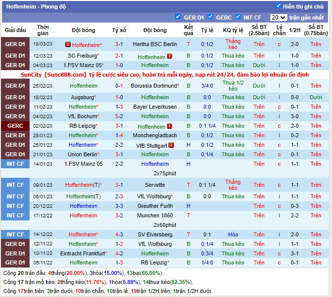 - Chọn Hoffenheim +0.25 HT (kèo phụ)