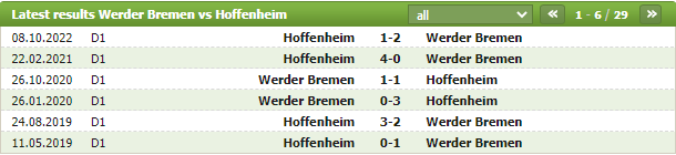 Lịch sử thi đấu của Werder Bremen vs Hoffenheim