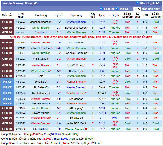 Phong độ đội bóng Werder Bremen vs Hoffenheim
