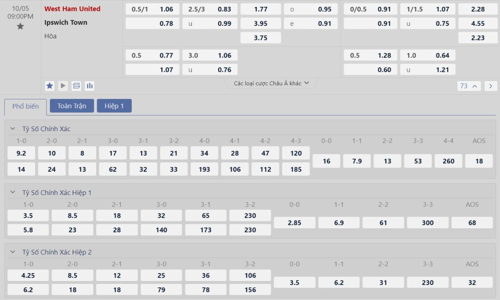 Được thi đấu trên sân nhà cùng thực lực được đánh giá cao hơn so với đối thủ nên không ngạc nhiên nếu West Ham được đánh cao hơn so với Ipswich trong trận đấu này qua mức kèo mà nhà cái niêm yết là 0.75. Tuy nhiên như đã nói, đây không phải thời điểm mà đội quân của HLV Julen Lopetegui có phong độ cao. Thậm chí, chuỗi 5 trận không thắng liên tiếp trên mọi đấu trường với 3 thất bại gần đây còn khiến tinh thần của The Hammers bị đặt dấu hỏi. London Stadium cũng không còn là nơi đi dễ khó về khi cả 3 trận thua từ đầu chiến dịch 2024/25 của “Búa tạ” đều diễn ra trên sân nhà. Trong khi đó ở phía bên kia, Ipswich dù đang góp mặt ở nhóm chưa thắng tại Premier League nhưng nên nhớ ở 6 lần ra sân đã qua, các học trò HLV Kieran McKenna chỉ có 2 lần sắm vai kẻ chiến bại. 1 điểm là mục tiêu không hề viển vông dành cho các vị khách.