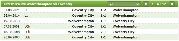 Lần cuối cùng mùa Wolves đụng độ với Coventry là trong một trận đấu giao hữu vào năm 2021 khi mà Bầy Sói đã đánh bại đối thủ với tỉ số 2-1. Dù sao thì vẫn có những sự chênh lệch nhất định về mặt năng lực giữa các đại diện của hai hạng đấu EPL và EFL. Wolves sẽ cho thấy khả năng lấn át của mình trước Coventry và dù cũng sẽ gặp những khó khăn nhất định, thế nhưng họ vẫn sẽ biết cách để bứt lên sau cùng.